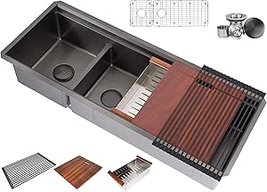 If you don't want to wash the dishes, cutting board covers the entire sink also cover your dirty dishes. It can be switched to a cutting board or a separate sink mode. Your sink can be a practical fixture or a designer focal point with the correct material. My 48 paragon™ sink offers an additional 92 square inches of usable bowl space compared to the galley. This kitchen sink has 18 x 6 x 9 inches size which is suitable for kitchens with small platform or utility rooms.